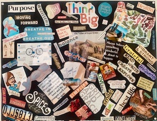 I stare at this, an old poster on my bedroom wall. I worked on it the first few years when we still had magazines and leftover scrapbooking stuff. It gives me things to strive for on down days…or a great greeting as I get out of bed ready for a brand-new day!