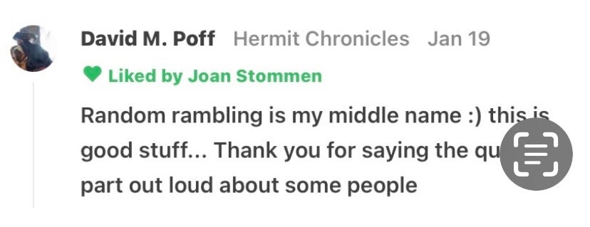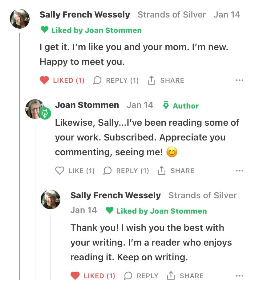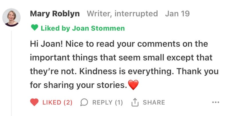 Joan, you are the soul of kindness. Thank you so much for this lovely, heartfelt message. And no, there aren’t “better” writers on Substack. You are a gem.
